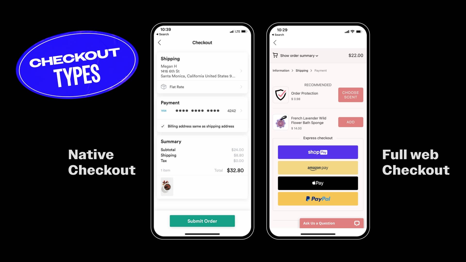- A reminder of preferred payment methods such as Apple Pay, Afterpay, Shop Pay, etc.