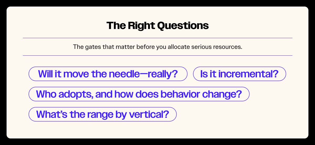 - Will this move the needle in absolute dollars at our scale?