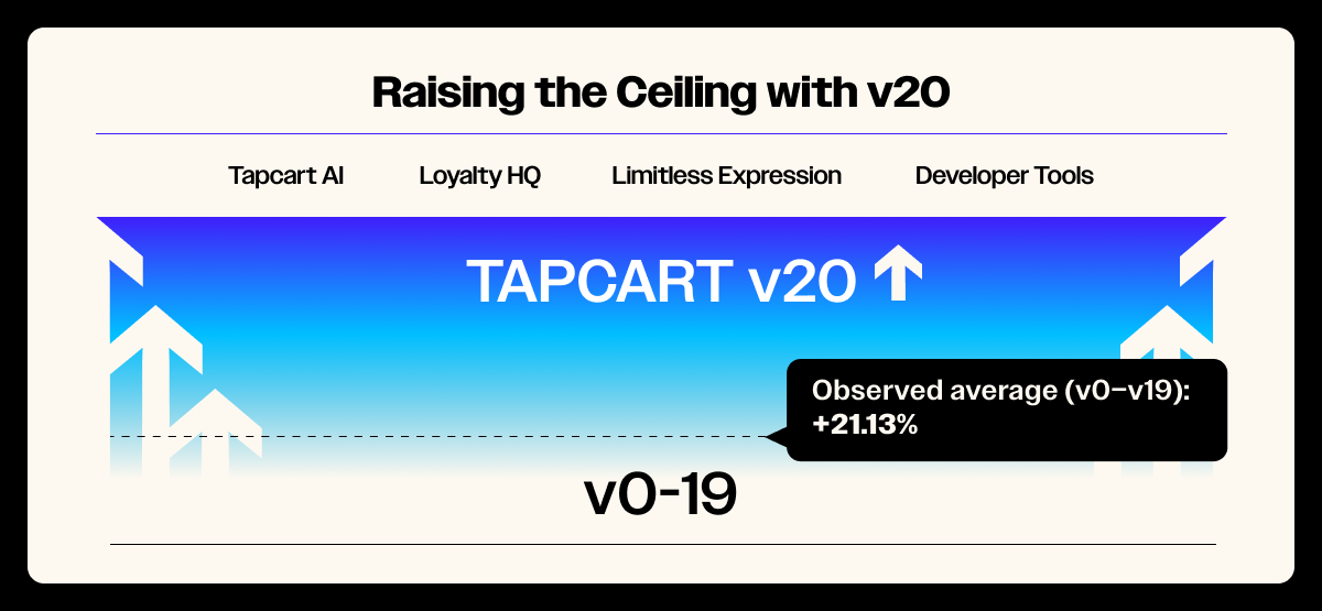 Every outcome presented here reflects platform versions 0–19 (pre Tapcart v20). That baseline gives us a stable, credible foundation to evaluate what’s material today and where execution can raise the ceiling tomorrow.