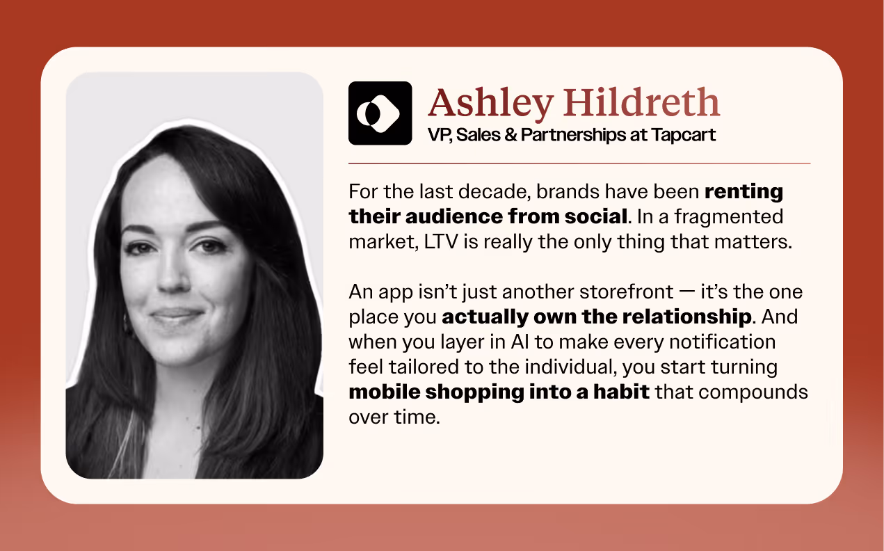 Ashley Hildreth, VP of Marketing and Growth at Tapcart, emphasizes that this infrastructure is the only way for brands to escape the rising costs of traditional channels: