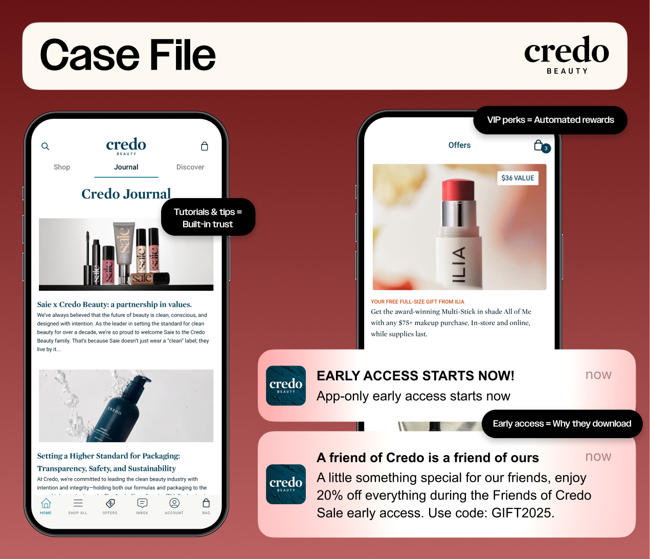 Credo drove higher basket quality by embedding education and proof directly into the mobile shopping flow, then using app-first early access and owned push to convert high-intent moments without adding headcount.